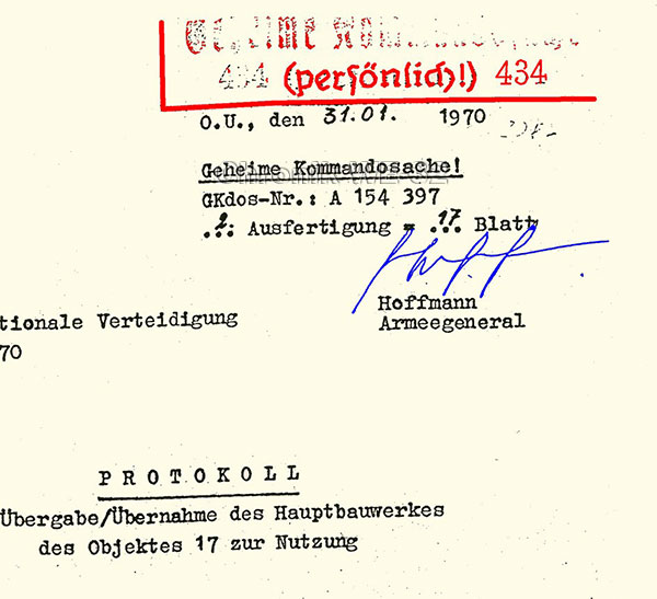 welche Leitungsorgane wo im noch zu errichtenden Schutzbauwerk ihren Platz haben sollten, hatte Verteidigungsminister Heinz Hoffmann seit Geltow klare Vorstellungen.