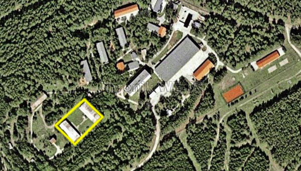 Abbildung 1.3 Ein Waldstück nordwestlich von Luckenwalde wurde wegen seiner natürlichen Tarnung von der militärischen Führung (in Abstimmung mit den Sowjets) für die einer besonderen Geheimhaltung unterliegenden künftige Hauptführungsstelle der NVA auserkoren. Gelb markiert ist der Bereich, unter dem sich ab 1969 der Bunker befand. Das obige Luftbild entstand Jahrzehnte später.