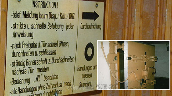 Abb. 4.5 „ ... nach Freigabe d. Tür schnell öffnen, durchtreten und schliessen“ lautete eine der Instruktionen auf einer Tafel im Eingangsbereich des Schutzbauwerkes. „Feinschmecker“ der