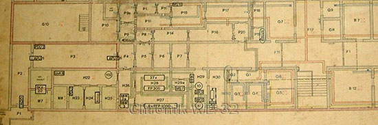 Chiffrierverbindungen. Der Komplex war im Schutzbauwerk als separater Bereich (unterer Flurbereich 2) von allem anderen abgetrennt. Zugang zur Zentrale hatten nur die mit einer
